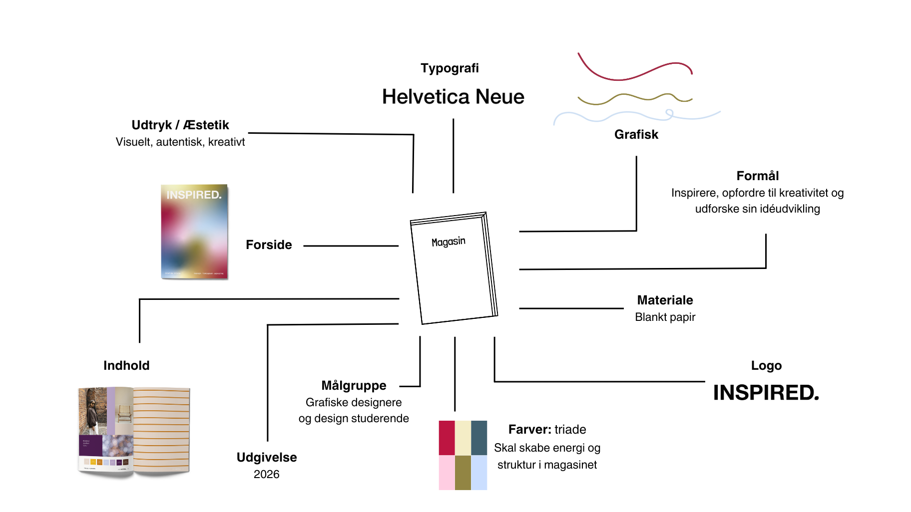 I mit bachelorprojekt udviklede jeg et koncept for et visuelt univers, der imødekommer grafiske designeres behov for inspiration under idéudvikling af deres designproces. Projektet er inspireret af Slow Design trenden og Slow Living livsstilen. Konceptet består af et fysisk inspirationsmagasin om grafisk design samt et tilhørende visuelt univers bestående af logo, farvepalette, typografi og grafiske elementer. Magasinet indeholder både faglig og visuel inspiration med fokus på fordybelse, nytænkning og kreativitet.