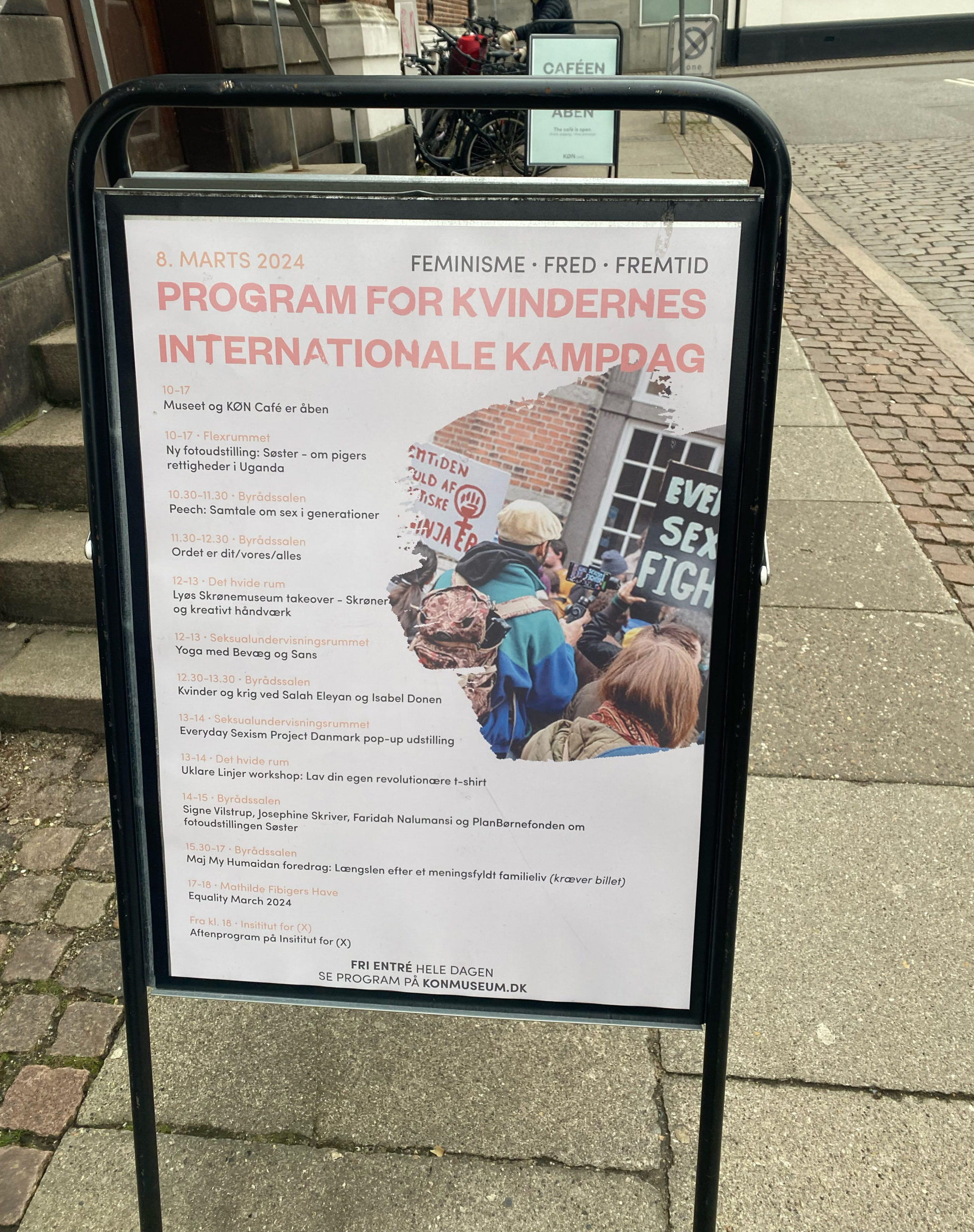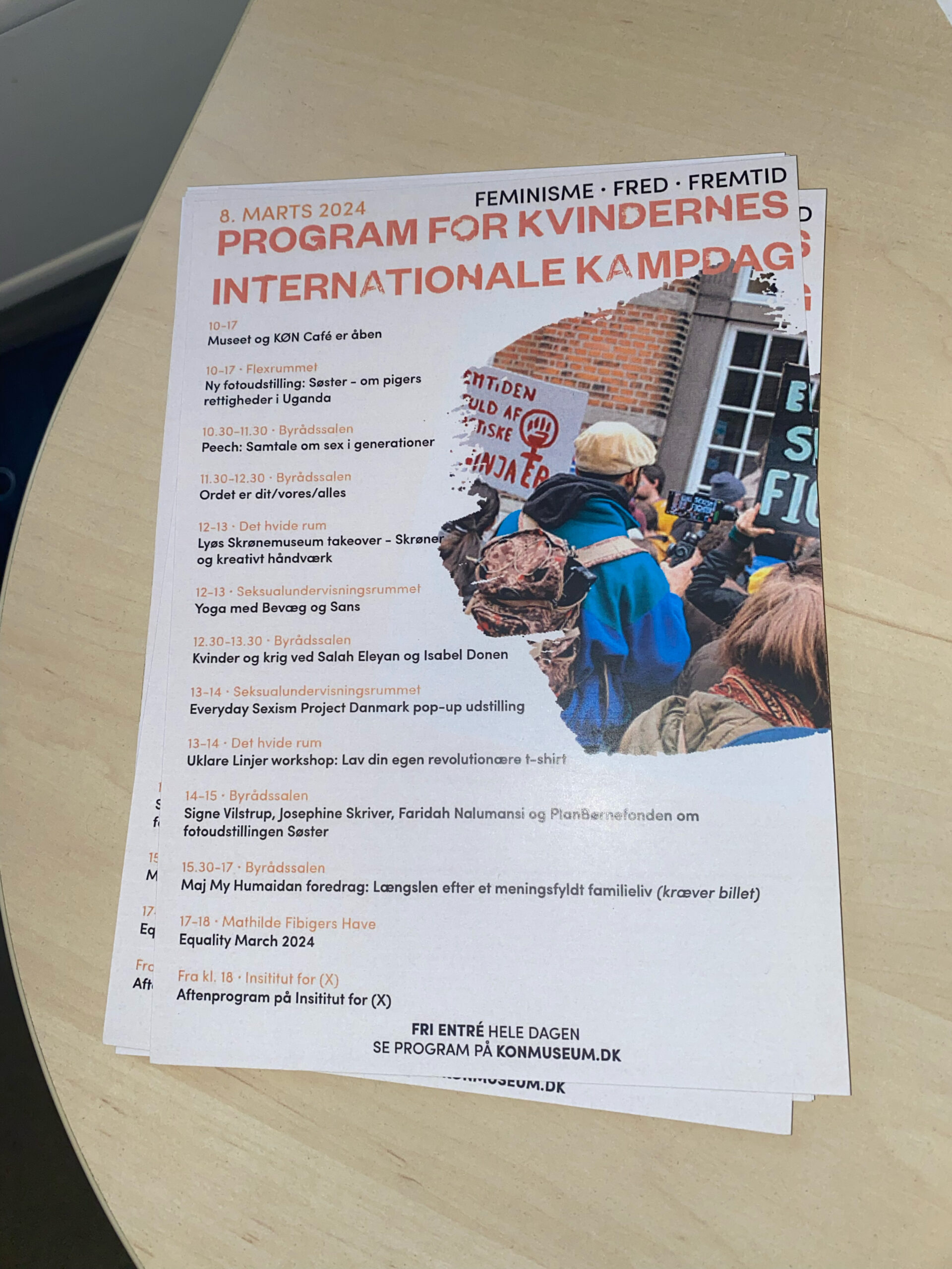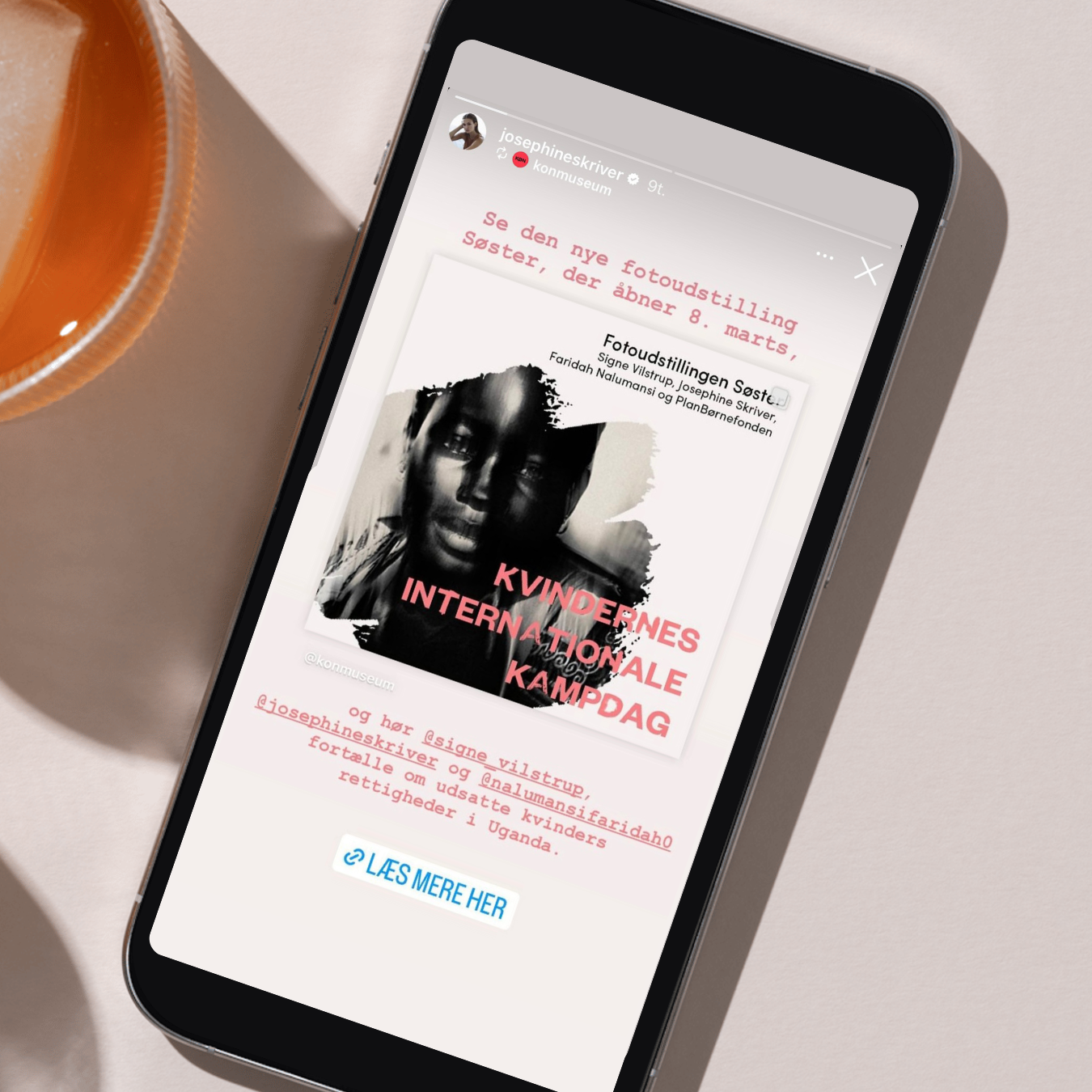 I min praktik hos KØN – Gender Museum Denmark udarbejdede jeg en selvstændig grafisk identitet / key visual for museets markering af Kvindernes Internationale Kampdag, der blev implementeret på tværs af deres kommunikationsplatforme. Josephine Skriver, som var en del af et af arrangementerne på museet, repostede en af mine grafikker på sin Instagramprofil med flest følgere i Danmark.