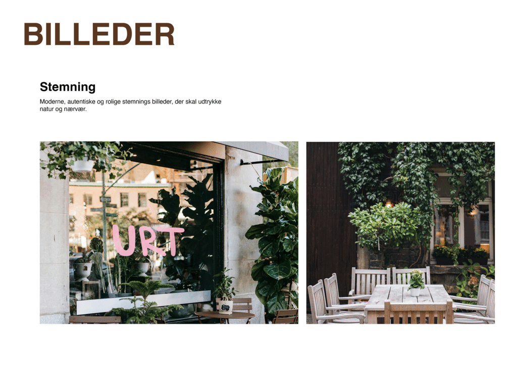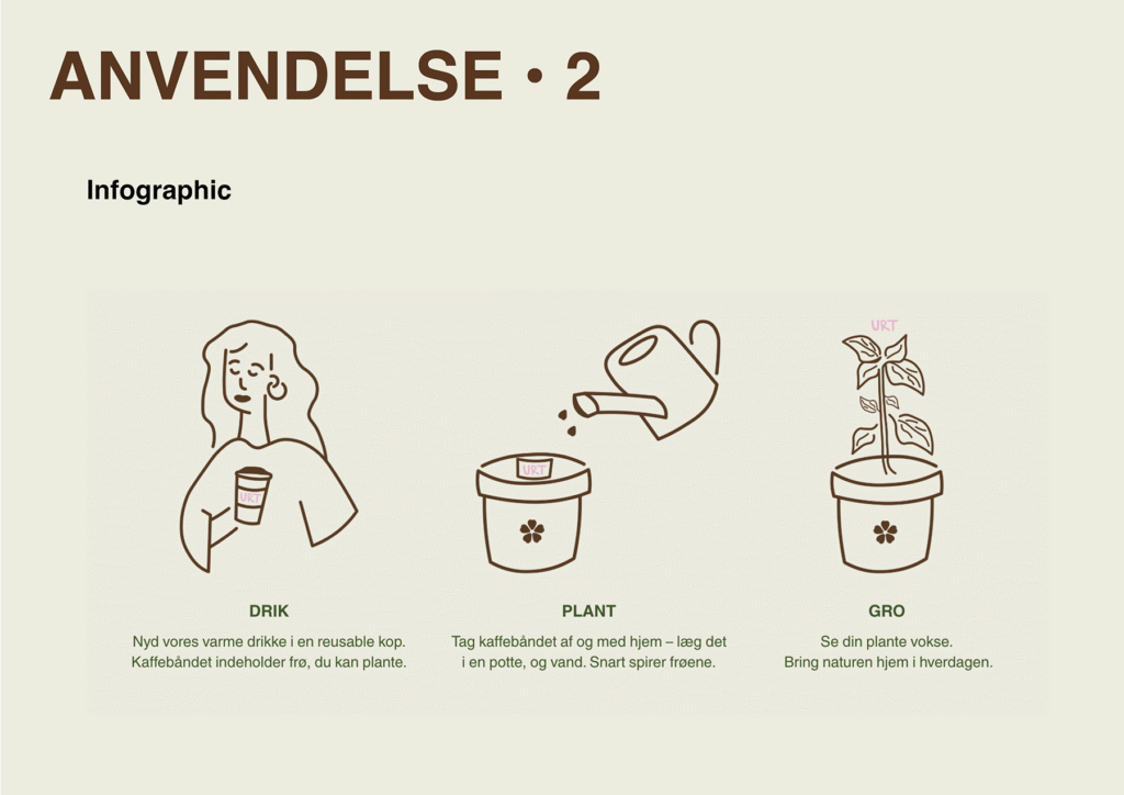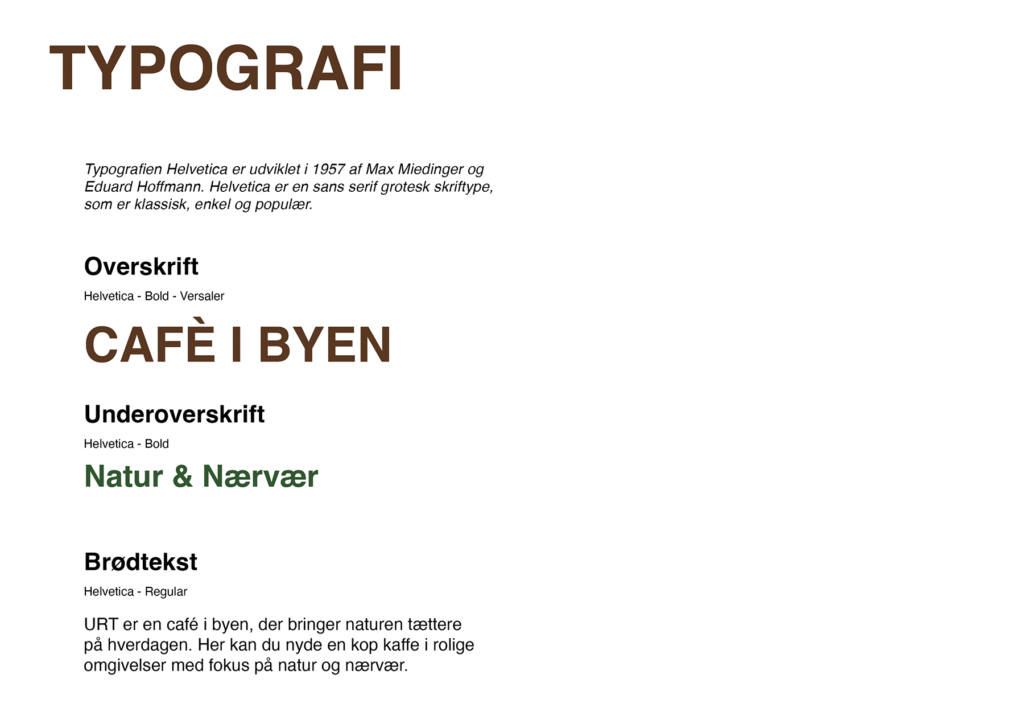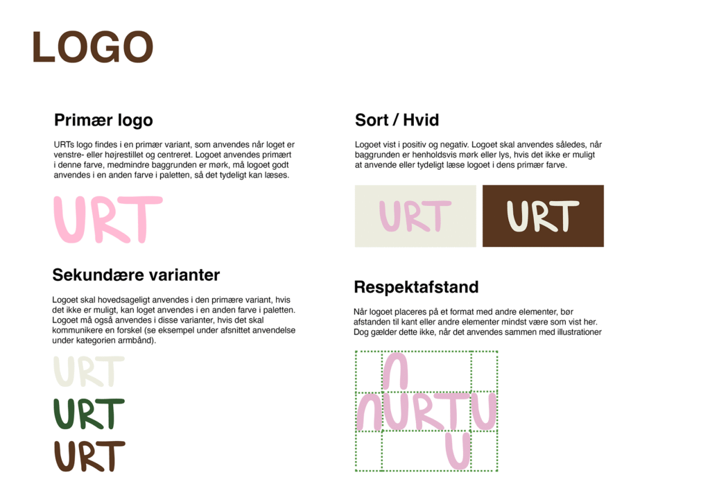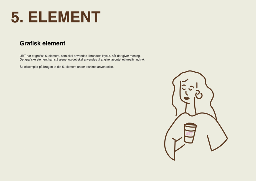 URT er en café midt i byen, der er inspireret af trenden ‘Embrace Nature’. Formålet er at designe en CVI til en café, der bringer naturen tættere på byen og hverdagen, og samtidig styrker forbrugernes følelse af forbindelse til naturen. Den visuelle identitet med logo, farver, typografi og grafiske elementer skal kommunikerer ro og nærvær i byen gennem en genkendelig designguide, som skal skabe ramme for identiteten på tværs af medier. Det grafiske univers skal gøre naturen attraktiv på ny og give forbrugerne værdi gennem en autentisk og meningsfuld oplevelse, der får natur og nærvær ind i hverdagen.